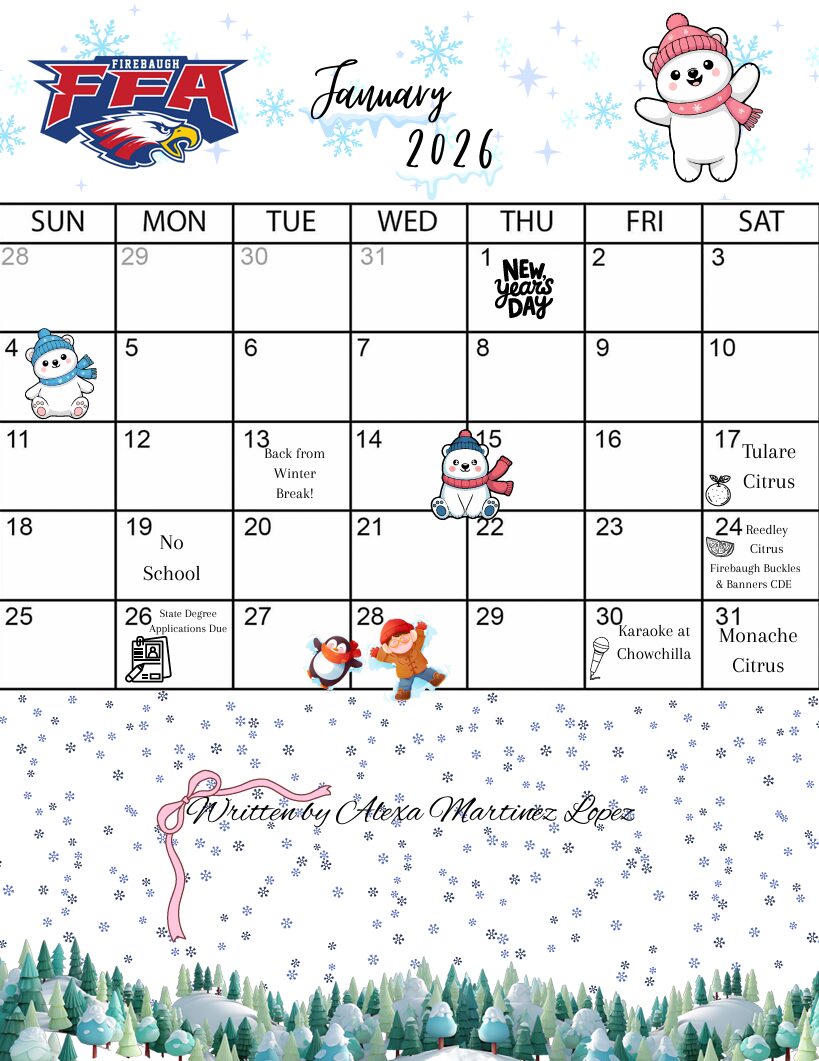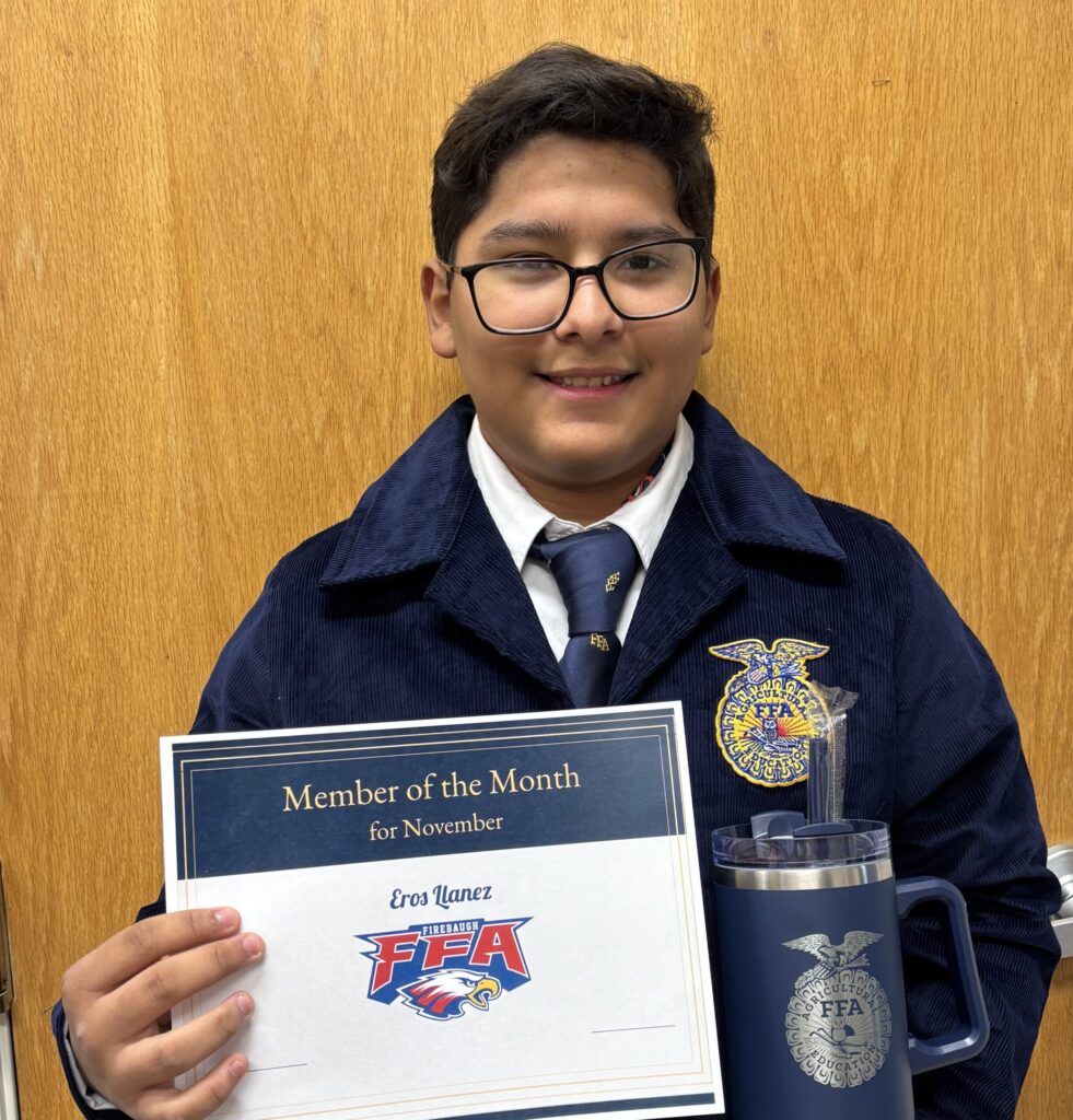 Our aggies of the month for the months of November/December are Adalid Martinez-Lopez and Eros Llanez. Adalid and Eros have been such a huge help for this year’s officer team. Adalid along with her officer sister Alexa Martinez-Lopez, have been everywhere. Adalid and Eros have been at every if not almost every single meeting this semester cheering on the officer team. Adalid has also taken over the tedious task of fixing up our middle room between Mrs. Correia’s and Ms. Smiths rooms. Thank you, Adalid and Eros, for everything you have done for us the officer team starting from the beginning of the school year until now. Sincerely, 2025-2026 Chapter Officer Team