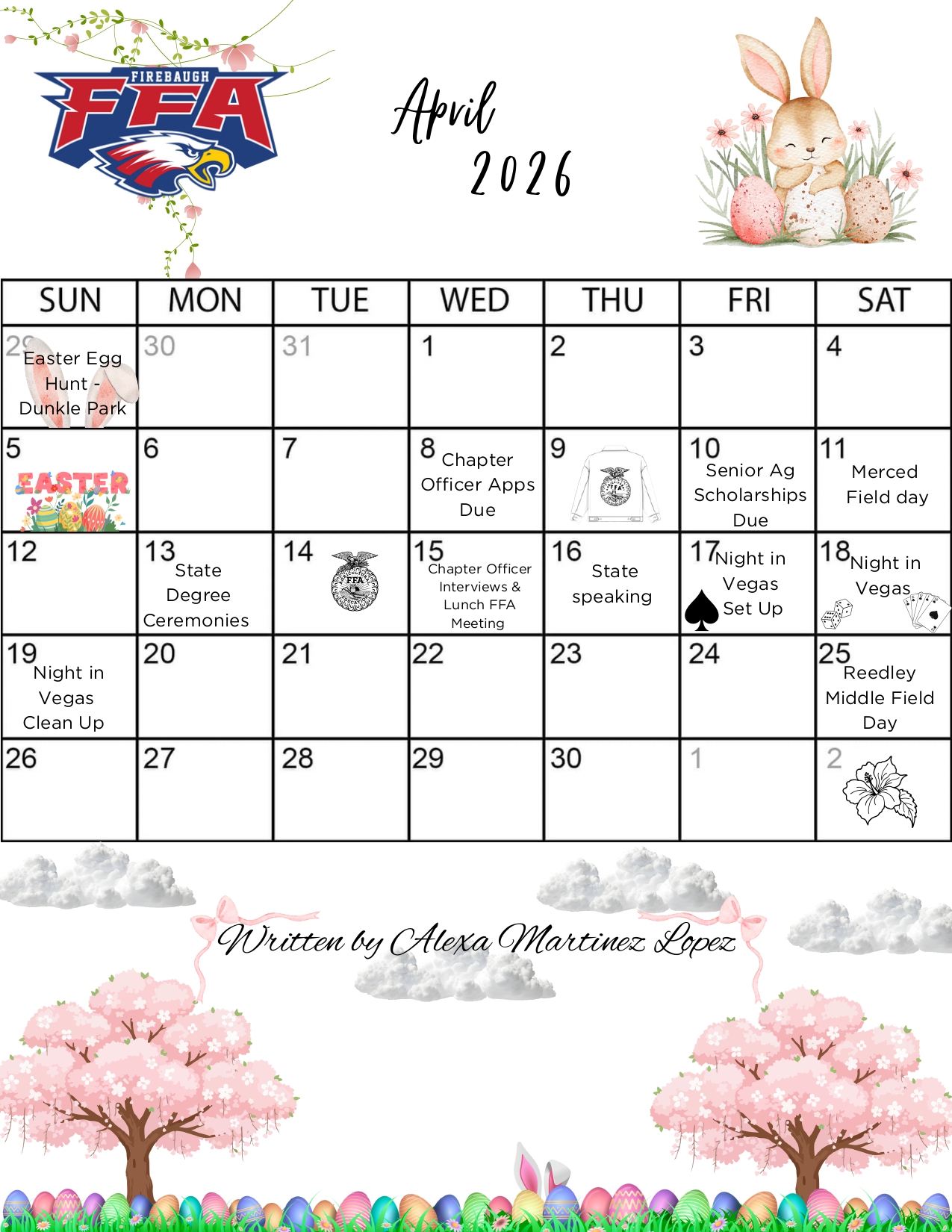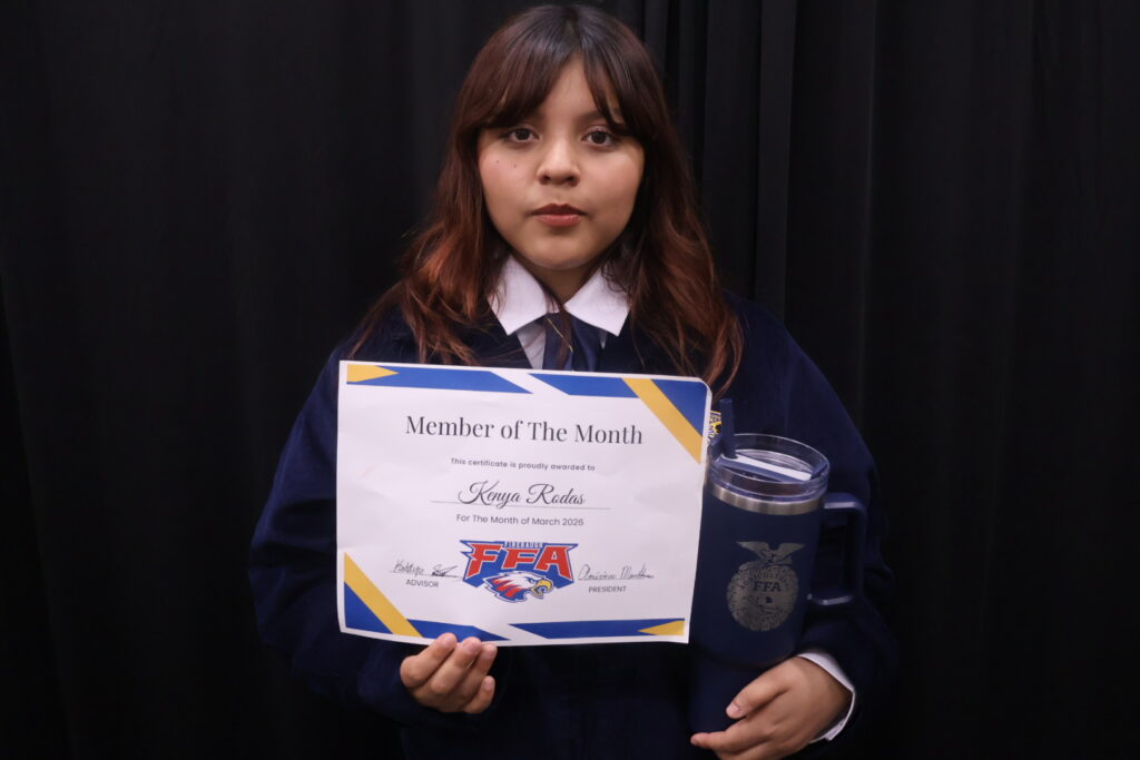 Our aggie of the month for the month of March is Kenya Rodas! Kenya has been one of our most active FFA members here at Firebaugh FFA. She’s participated in poultry and is competing in Co-Ops at Cal Poly State Finals. We are thankful for you for your active participation in our chapter and your help you’ve given throughout your years in Firebaugh FFA. Sincerely, 2025-2026 Chapter Officer Team